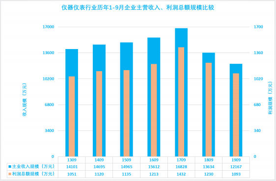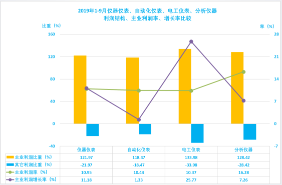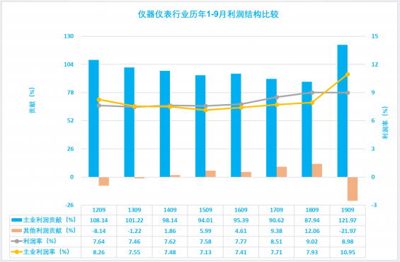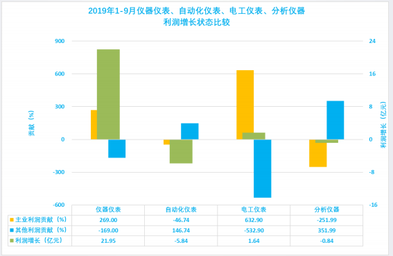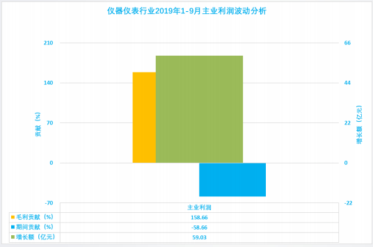 1.3.1 儀器儀表行業2019年1-9月主業利潤波動分析