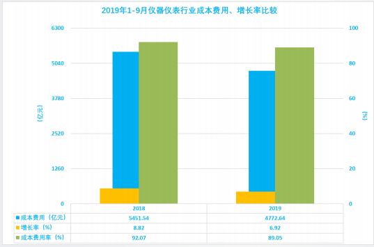 1.4 儀器儀表行業2019年1-9月成本、費用波動分析