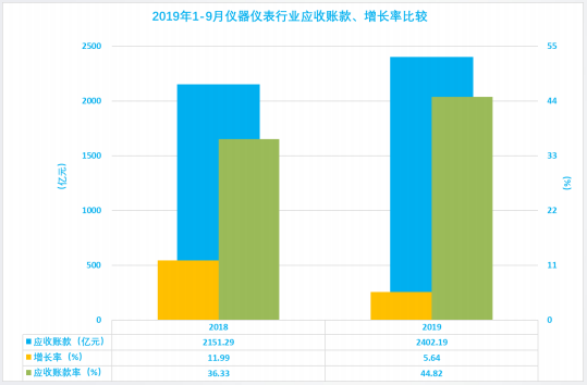 2.9 儀器儀表行業曆年1-9月應收賬款、增長率、應收賬款率比較