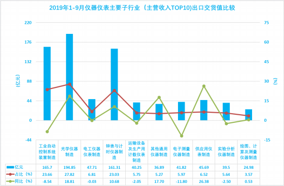 1.20 2019年1-9月儀器儀表主要子行業(主營收入TOP10)出口交貨值比較