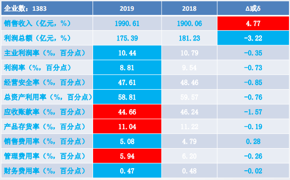 11個經濟運行指標中:銷售收入、利潤總額、主業利潤率、經營安全率、應收賬款率、產品存貨率和管理費用率好於上年同期;其餘4個指標差於上年同期。