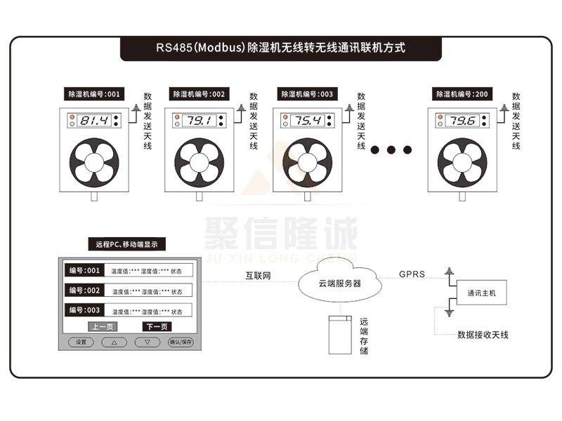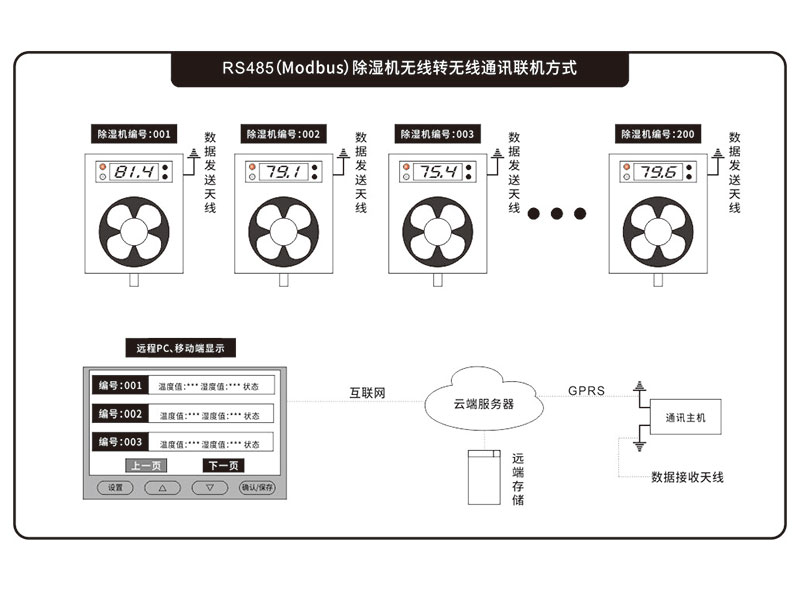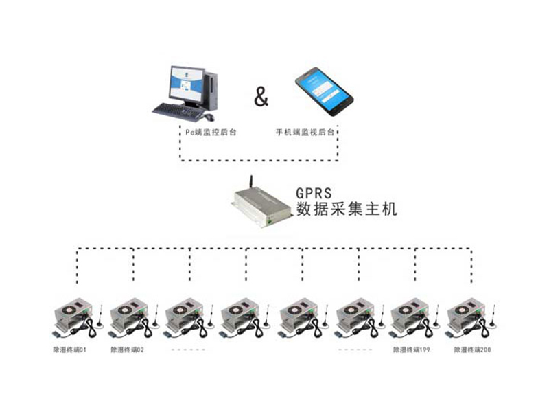 智能無線溫濕度集中監控係統由智能無線溫濕度集中監控主機、智能無線溫濕度集中監控子機和監控軟件構成。每台智能無線溫濕度集中監控主機可與最多200台智能無線溫濕度集中監控子機組網。智能無線溫濕度集中監控主機通過RS232接口與電腦連接或通過SIM模塊,可接入監控計算機或可通過無線通訊信號把數據發送到上一級的運管中心。