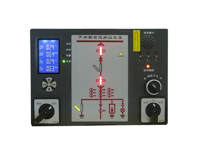 智能操控裝置具有一次回路模擬圖及開關狀態指示,高壓帶電顯示,自動溫濕度控製,人體感應自動照明,語音提示,電參數測量及RS485通訊接口等眾多功能,集操作、顯示於一體。